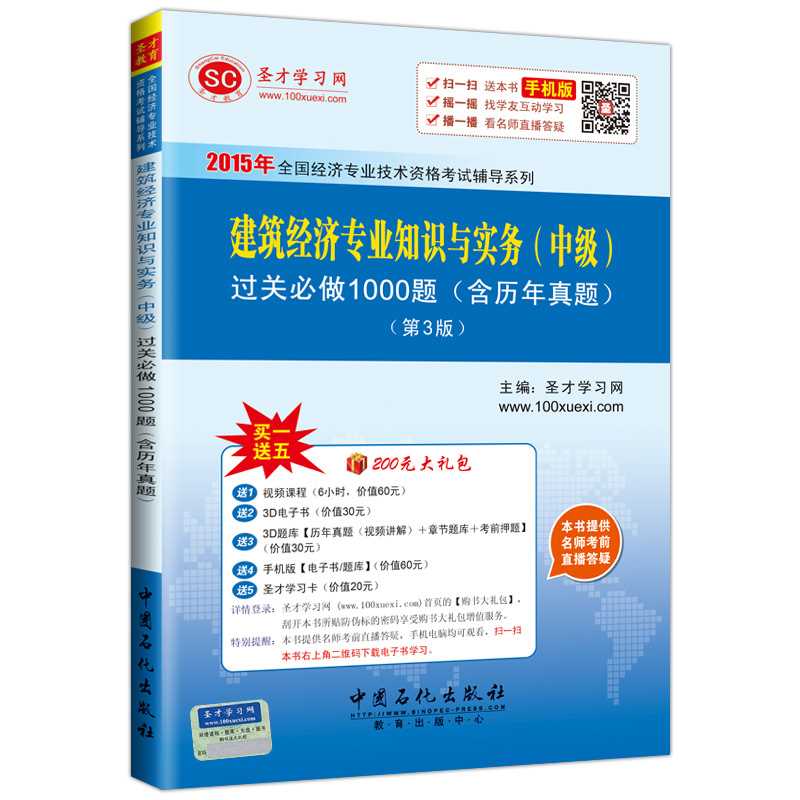 2015年经济师-建筑经济专业知识与实务(中级)过关必做1000题(含历年真题)(第3版) 本书是全国经济专业技术资格考试科目“建筑经济专业知识与实务(中级)”的过关必做习题集。本书遵循2015年版教材《建筑经济专业知识与实务(中级)》的章目编排,共分为11章,根据2015年考试大纲的要求及相关法律法规精心编写了约1000道习题,其中包括了部分历年真题。所选习题基本涵盖了考试大纲规定需要掌握的知识内容,侧重于选编常考重难点习题,并对所有习题的答案进行了详细的分析和说明。